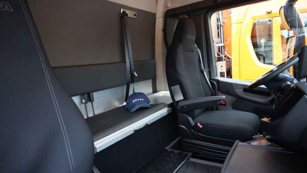 Nejdůležitější vlastností kabiny CR17N jsou čtyři sedadla, která umožňují osádce vozidla pohodlnou a bezpečnou jízdu uvnitř kabiny ve chvílích, kdy neprobíhá sběr odpadu. Řidič a osádka si navíc užívají mimořádně pohodlný interiér kabiny, který díky plně elektrickému pohonu nabízí ještě nižší hladinu hluku. Prostorný a dobře organizovaný pracovní prostor řidiče poskytuje všechny relevantní bezpečnostní systémy a také snadno viditelné přístroje a ovládací prvky v ergonomickém dosahu.