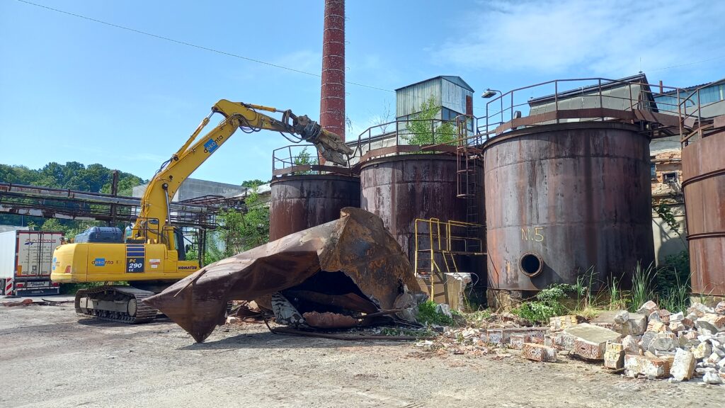 Na začátku projektu byly nejdříve odstraněny nebezpečné historické chemikálie ze všech nadzemních i podzemních nádrží a jímek. Jednalo se především o odpadní průmyslové vody s vysokým obsahem chromu a fenolů. Dále byly postupně demolovány vybrané stavební objekty. Zajímavým nálezem byly historické jímky na redukci Cr6+ na Cr3+ s využitím v kožedělném průmyslu. Technologicky se využíval dichroman sodný, který se v kyselém prostředí kys. sírové po přidání cukrů redukoval na síran chromitý, který bylo možné využít k činění kůží. Tyto kruhové jímky byly schované pod dvojitou betonovou podlahou v podzákladí plechového skladu a byly vyplněné sytě žlutými chromovými vodami a sutí. Celkový obsah chromu v jímkách se pohyboval okolo 5 g/l (dominantně jako Cr6+), bilančně cca 19 kg! Podařilo se tak odstranit jasný zdroj kontaminace podzemních vod v areálu.